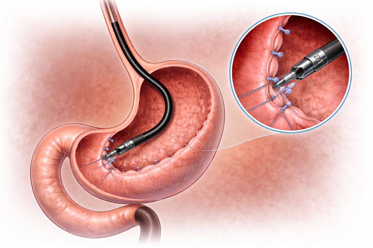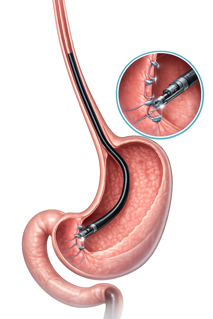 La endoscopia bariátrica es un procedimiento médico avanzado que permite reducir el tamaño del estómago mediante suturas internas realizadas por vía endoscópica, sin necesidad de realizar incisiones externas.